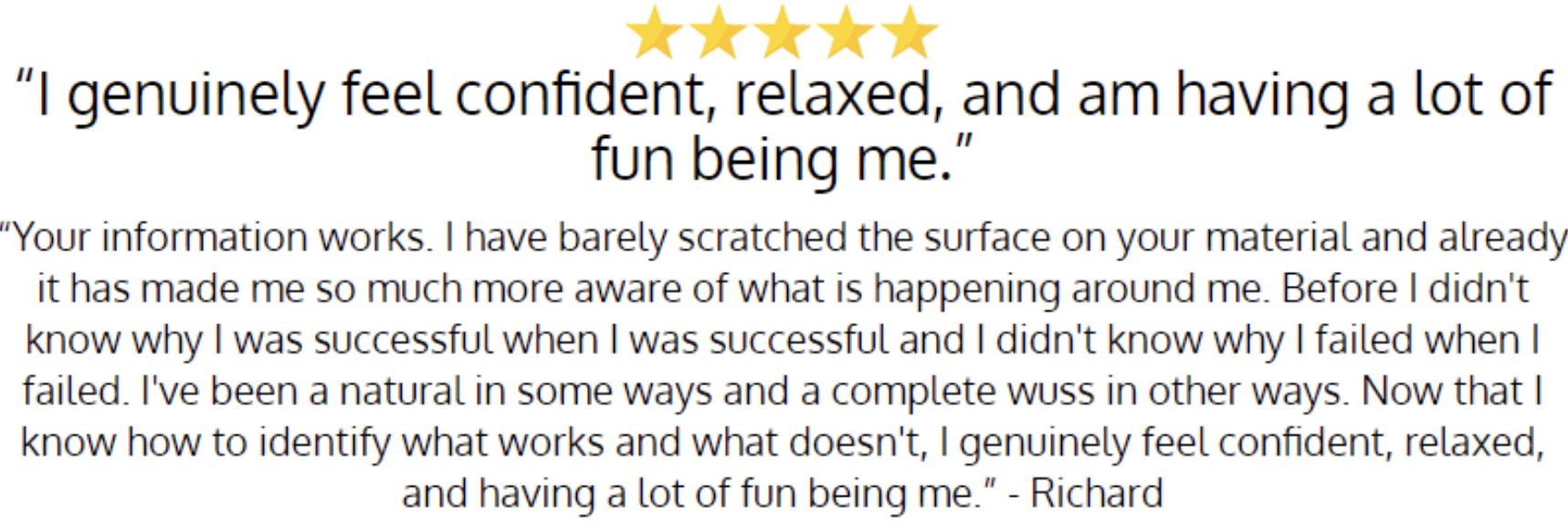 "Thank you for creating such wonderful products. Though I have just recently purchased them, they have already begun to have a major impact on my confidence level with women."
